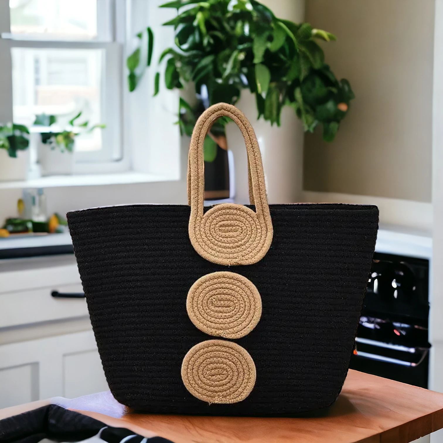 This Black Handicrafted tote bag ( Eco-Friendly bag ), Shopping bag is crafted by hand for daily use. Ideal for carrying all your essentials with style, it effortlessly complements both casual and formal attire. It’s the perfect accessory to elevate any casual look and ensure comfort during busy days. Each bag is uniquely handcrafted to order, so minor irregularities or imperfections may occur.