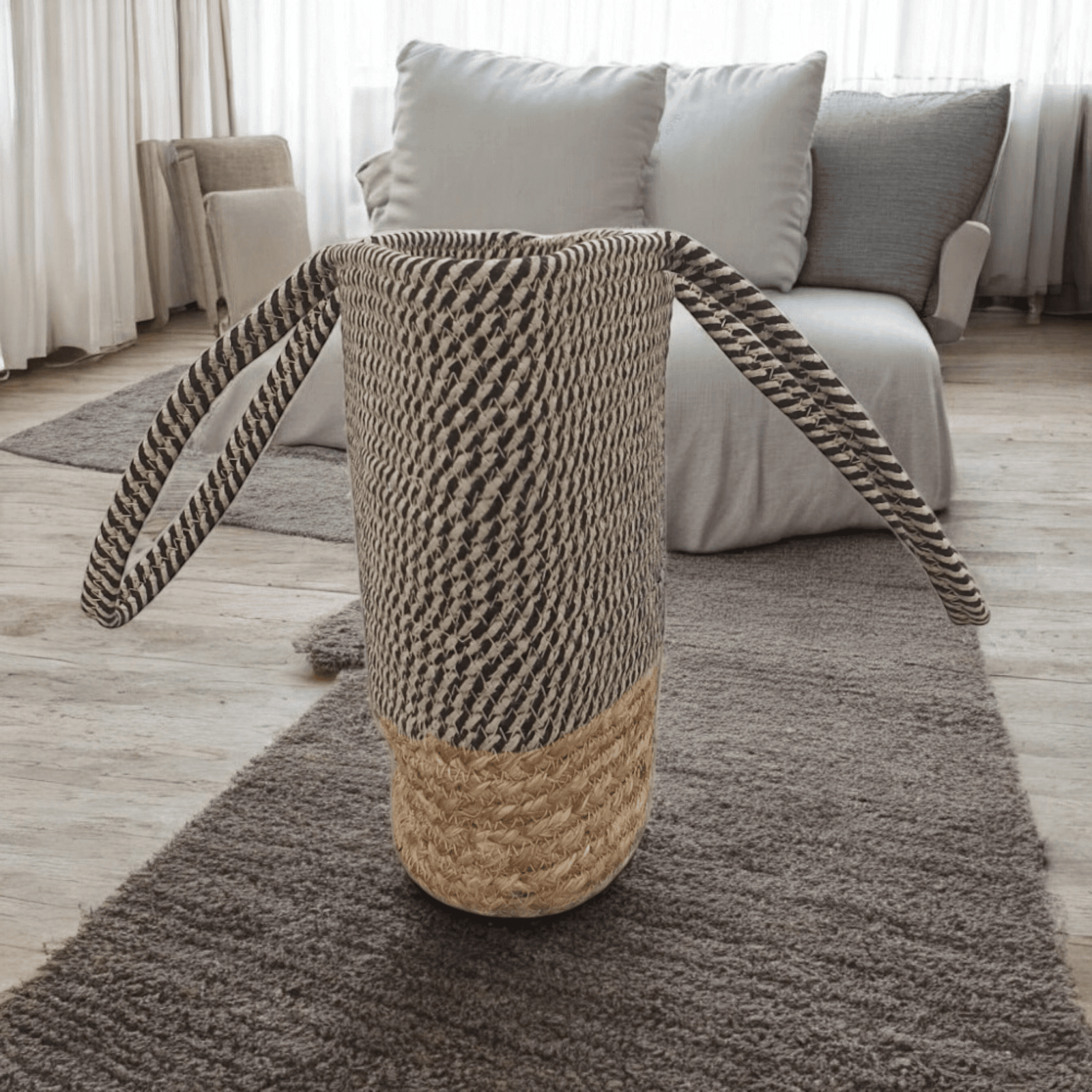 Made from premium 100% Golden Jute, a renewable, biodegradable resource, this tote embodies durability without ecological harm. Its sturdy, woven texture ensures longevity, while the natural beige base, accented with sleek black trim, exudes minimalist elegance. Perfect for pairing with casual denim, office attire, or weekend brunch outfits, it’s a seamless addition to any wardrobe.