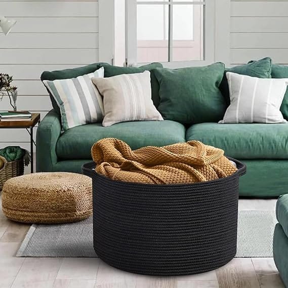 - MULTIPURPOSE BASKET: Our 22×14 inches Extra Large Laundry Basket 22×14 inches jute cotton basket is perfect for storing a variety of items. Whether it’s jeans, shirts, or blankets for your laundry room, magazines, toilet paper, or bath towels for your bathroom, or even plants and decor for any area of your home, this basket can handle it all. It can also be used as a toy basket for the nursery or playroom, or to store gardening tools for the yard. The special cat ear handles, along with two invisible handles at the side, make it very easy to carry. Check out our photos for multiple uses and inspiring ideas.