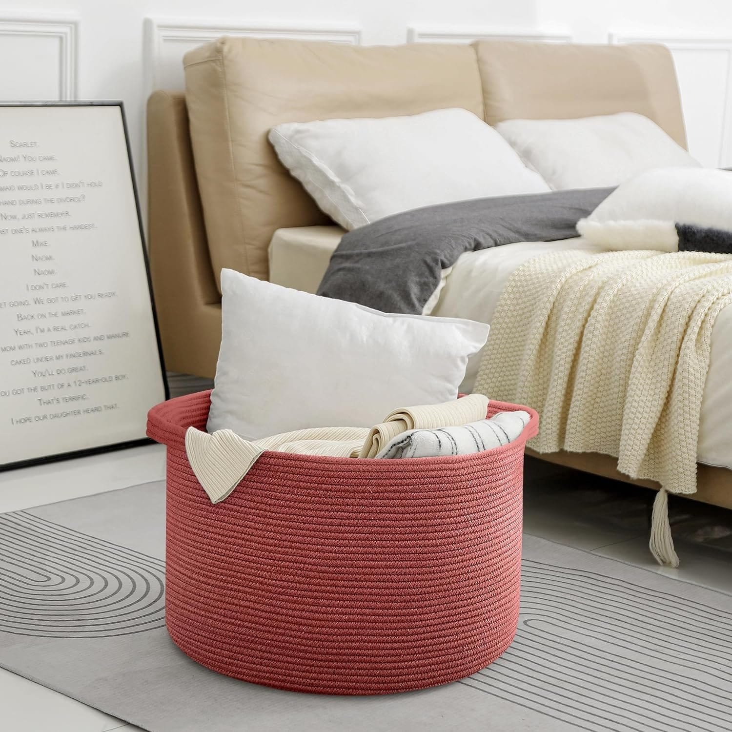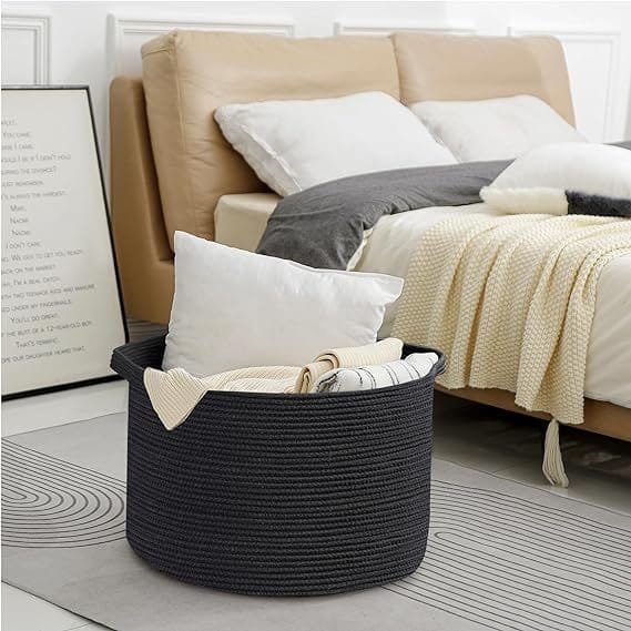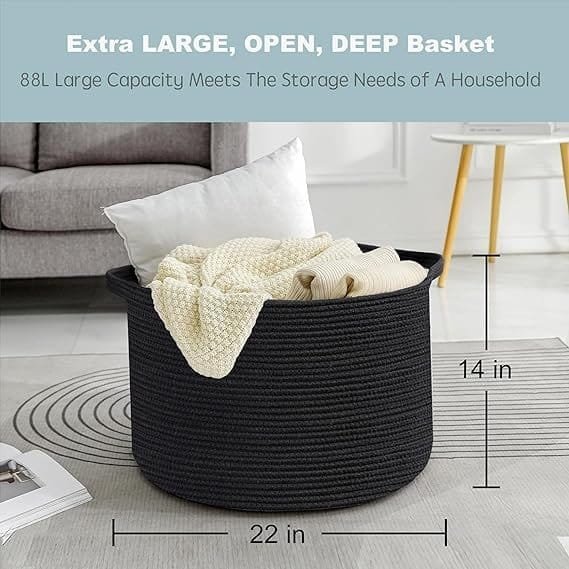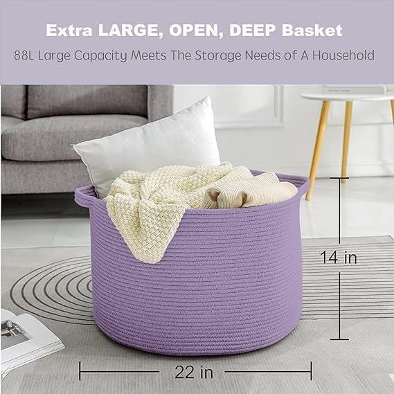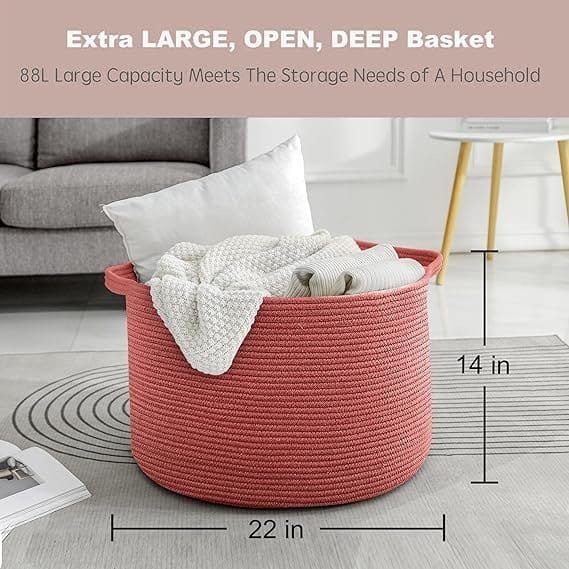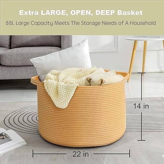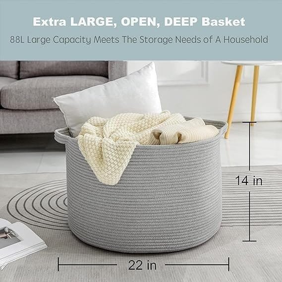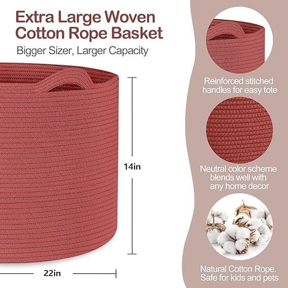 - SOFT & FIRM: The firm Extra Large Laundry Basket 22×14 inches storage container is not only soft but also sturdy enough to support heavy weight. The built-in handles ensure a tight grip on the round basket, making it easy to move around. When not in use, it can be conveniently folded to save space and placed on a shelf for fuss-free organization. Made of 100% cotton rope, this skin-friendly woven nursery basket has a soft touch and won’t cause any allergies, making it a safer choice for babies.