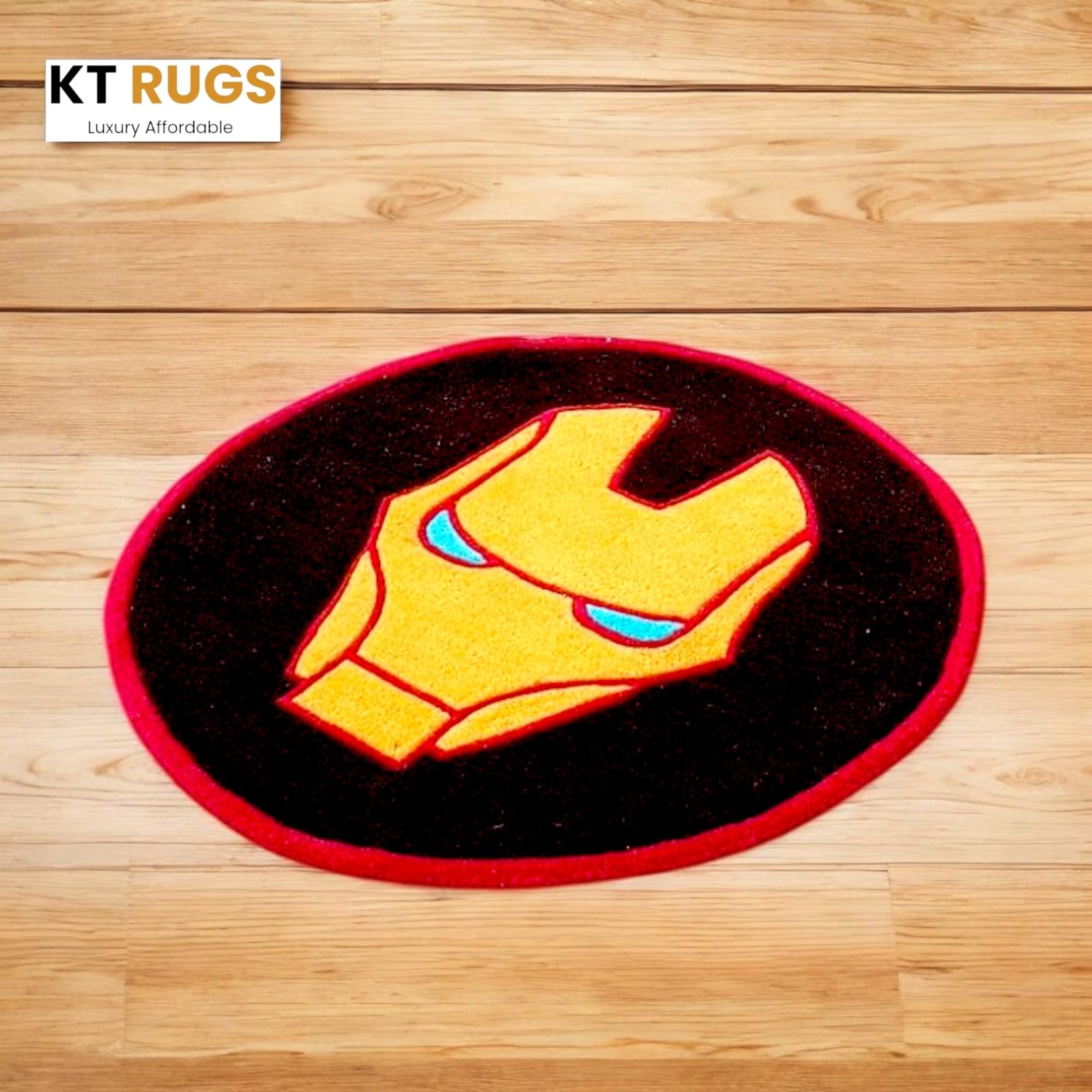 Iron Man Round Area Rug, Black and Red Superhero Design, Kids Room Decor
