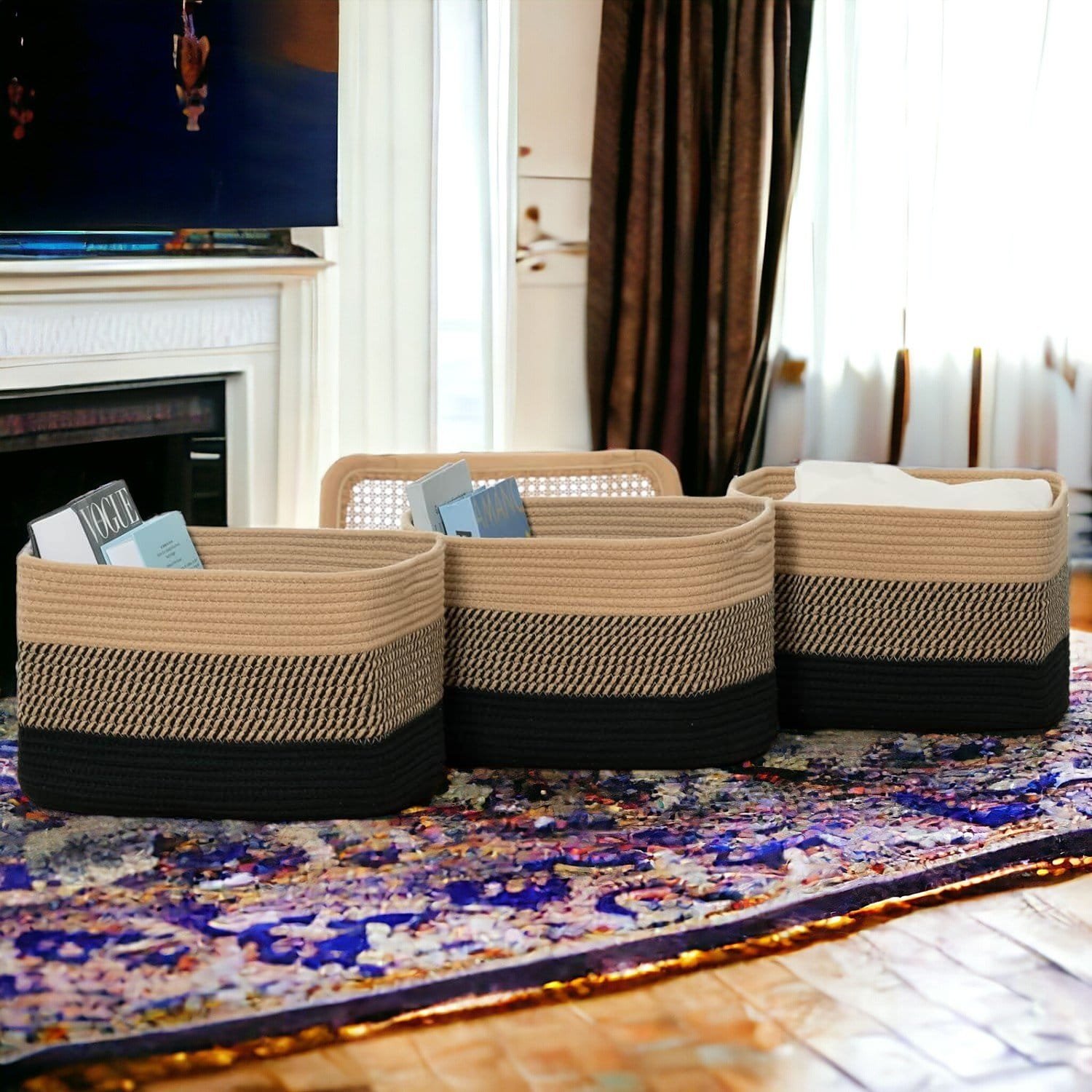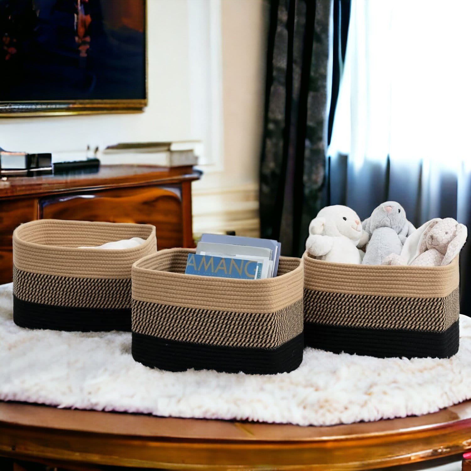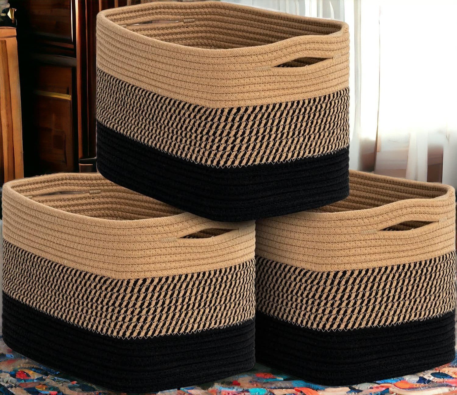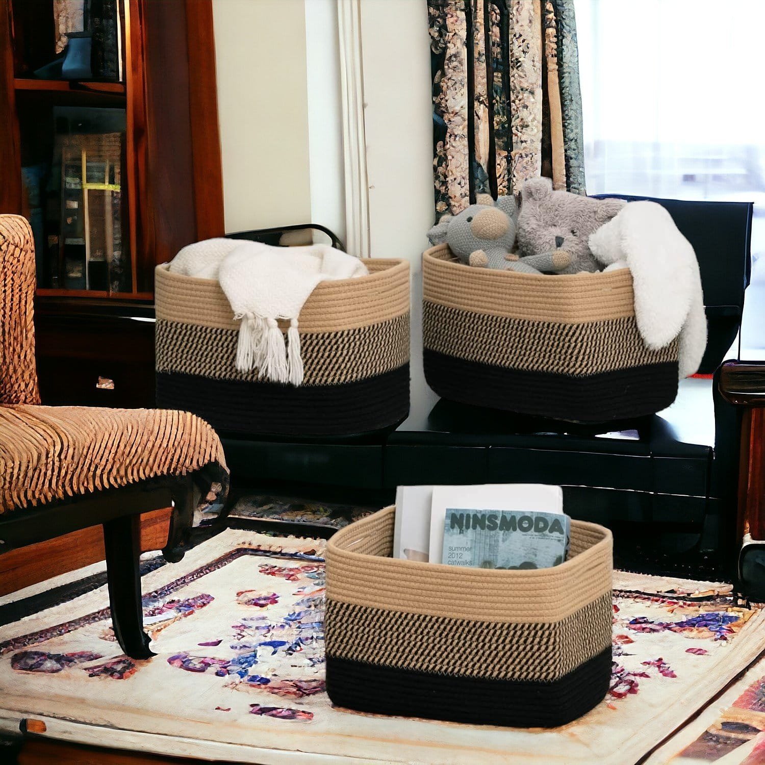 Storage Basket for Organizing Woven Rope Basket for Book, Towels, Toy Storage Organizer Cube Storage Bins for Shelves, Closet, Nursery, Decorative Medium Baskets, Black
