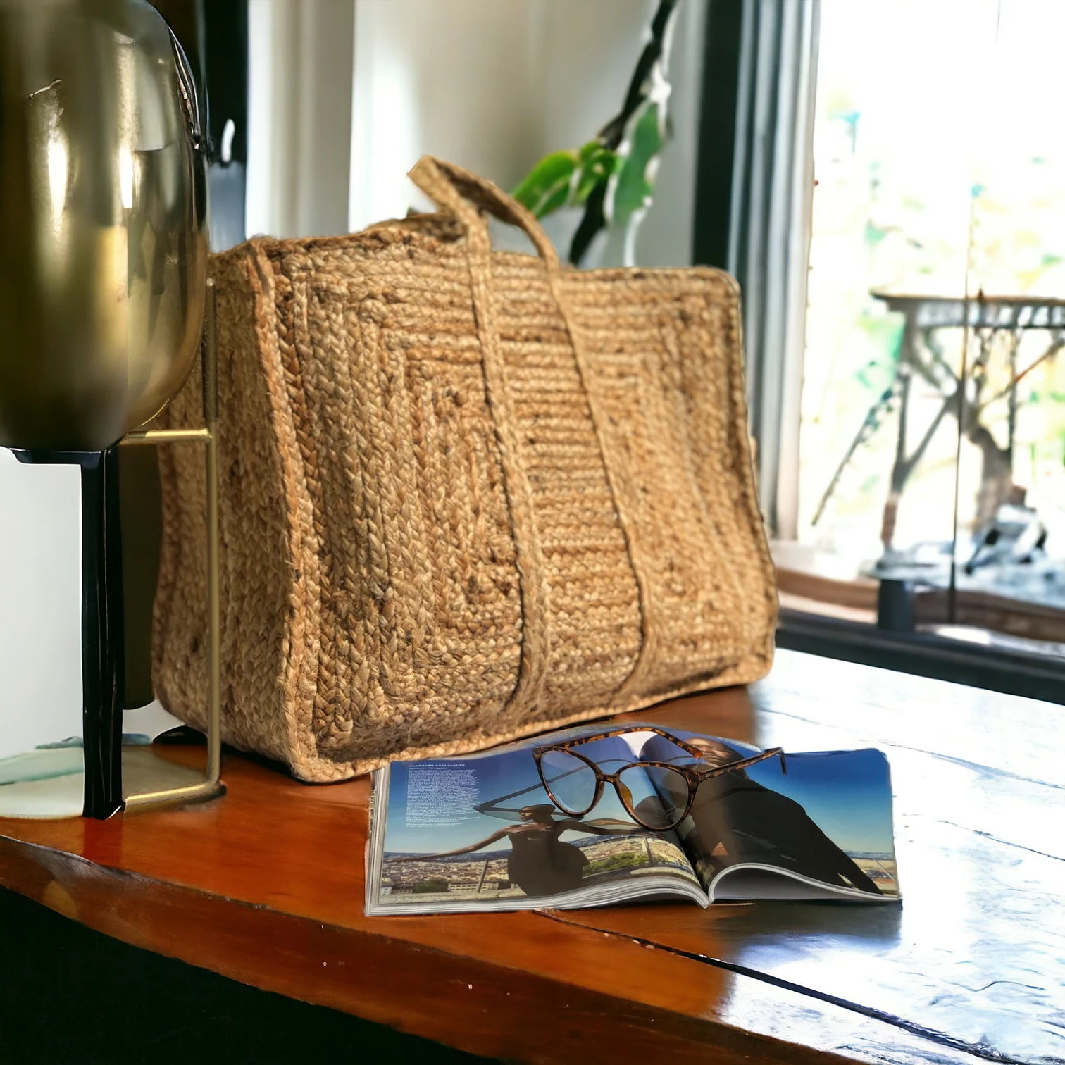 Design and Usability:Â The design of our jute tote bag is both modern and timeless. With reinforced handles and a sturdy base, it is built to withstand daily wear and tear. The natural jute material is complemented by stylish accents, making it a versatile accessory that pairs well with any outfit. Additionally, the lightweight nature of the bag ensures that it remains comfortable to carry throughout the day.